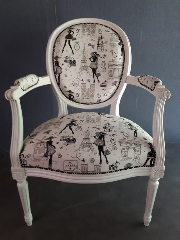 Entièrement refait, patine blanc rosé toute dans la nuance du tissu